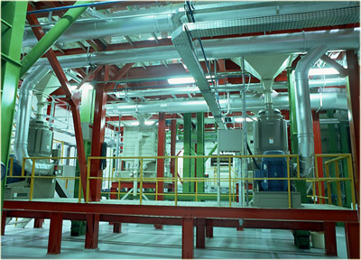 Em destaque as Balanças de fluxo contínuo , que aferem com precisão e liberam a quantidade de produto necessária à composição de um determinado lote.